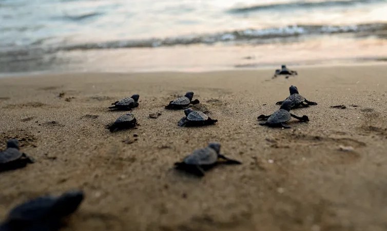 Since baby turtles hatch beneath the sand, scientists believe they may use temperature cues to time their emergence at night, when it is safer for them to scurry to the sea. However, our research indicates that vibrations or motion may play an important role in sea turtle sibling communication and the timing of emergence, even if we don’t completely understand how it happens.